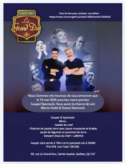 Pour une aventure de golf que vous voudrez répéter encore et encore, le Golf Le Grand Duc est LE club où aller jouer !